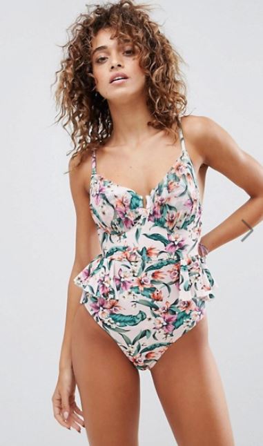 5. Perfect for hiding lumps & bumps with the print, the frill band over your waist and it comes in cup sizes so you can make sure it actually fits well: ASOS