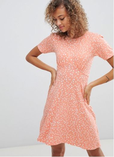 3. A tea dress is a super flattering shape. Nips you in at the waist and skims over your hips. You can wear a bra and big knickers so all bases are covered! ASOS spot tea dress